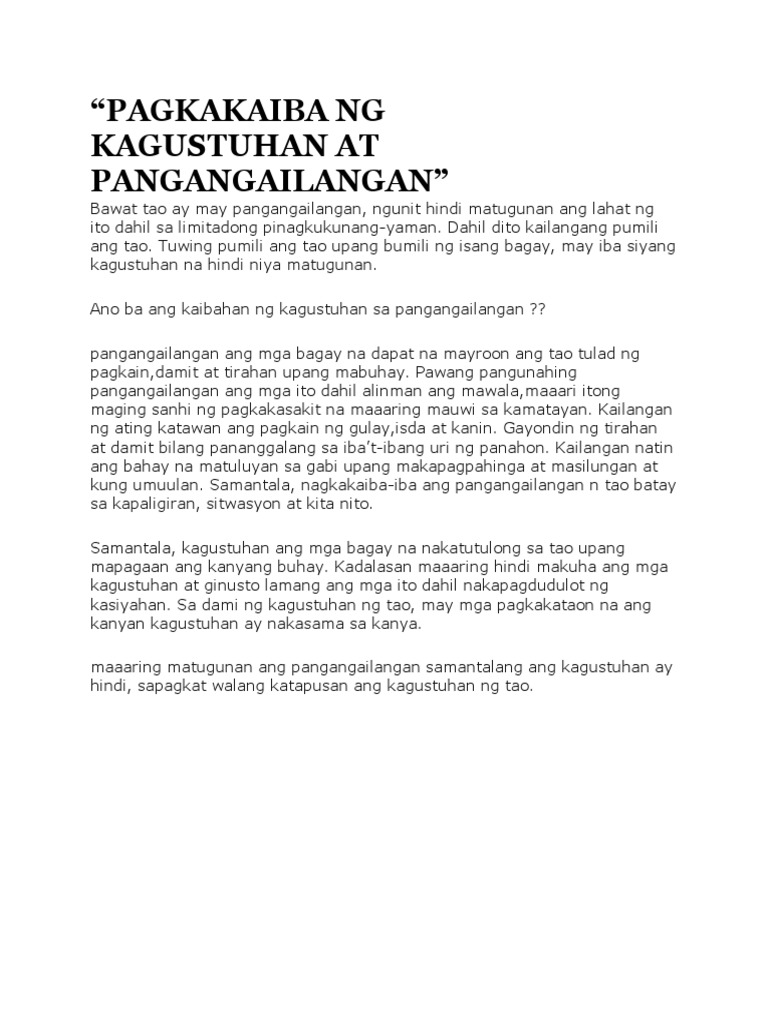 Ang Pangangailangan At Kagustuhan 10
