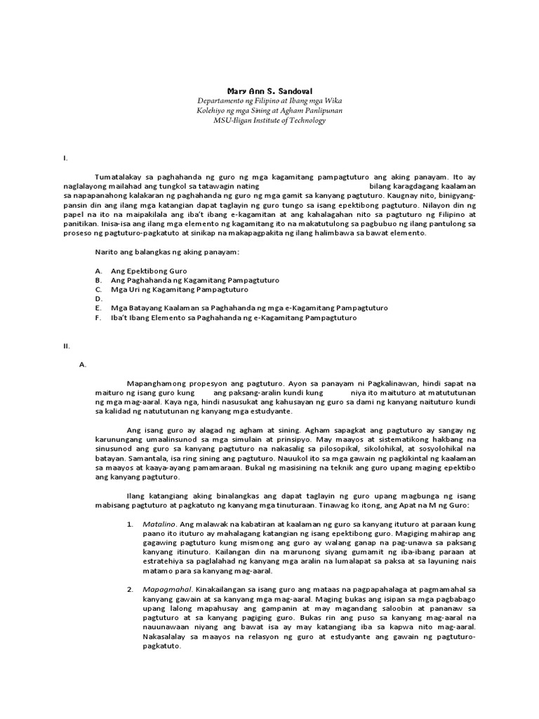 Mula sa produktong ito ng pagkatuto tatangkaing patunayan ang pagpapakahulugan pag-unawa ng mga mag-aaral sa isang tiyak na paksang pinag-aaralan na maaari pang gamitin sa ibat ibang angkop na gawain. Bihira akong makakita ng mga estudyante na ginagamit ang kanilang cell phone sa maling paraan sa mga klase kung saan nagtatanong ng mga inspiradong bagay ang mga guro nakikilahok ang mga estudyante sa lesson at nadarama nila na mahal sila ng guro at naroon ang Espiritu Santo. Pagtuturo ng filipino 1 1.
