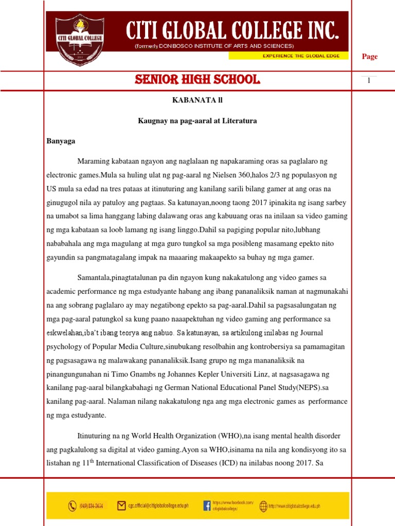 Epekto Ng Paglalaro Ng Computer Games Bo