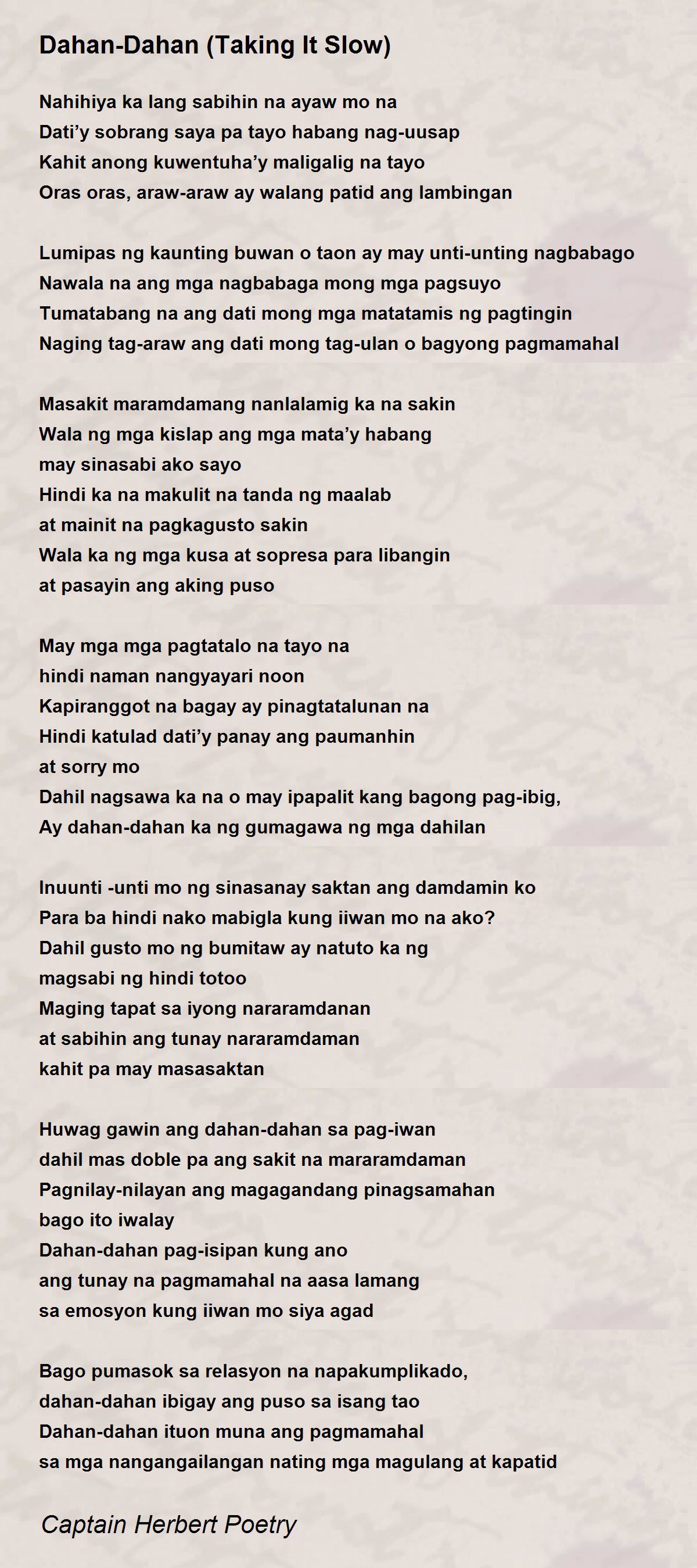 Dahan Dahan Taking It Slow By Captain Herbert Poetry Dahan Dahan Taking It Slow Poem