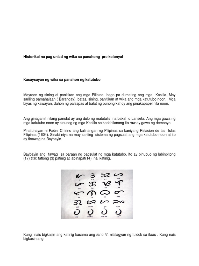 Historikal Na Pag Unlad Ng Wika Sa Panahong Pre Kolonyal