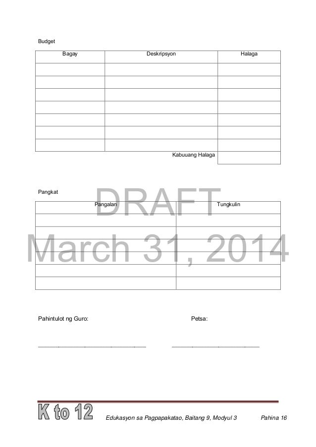 Edukasyon Sa Pagpapakatao Grade 9 Learner S Material